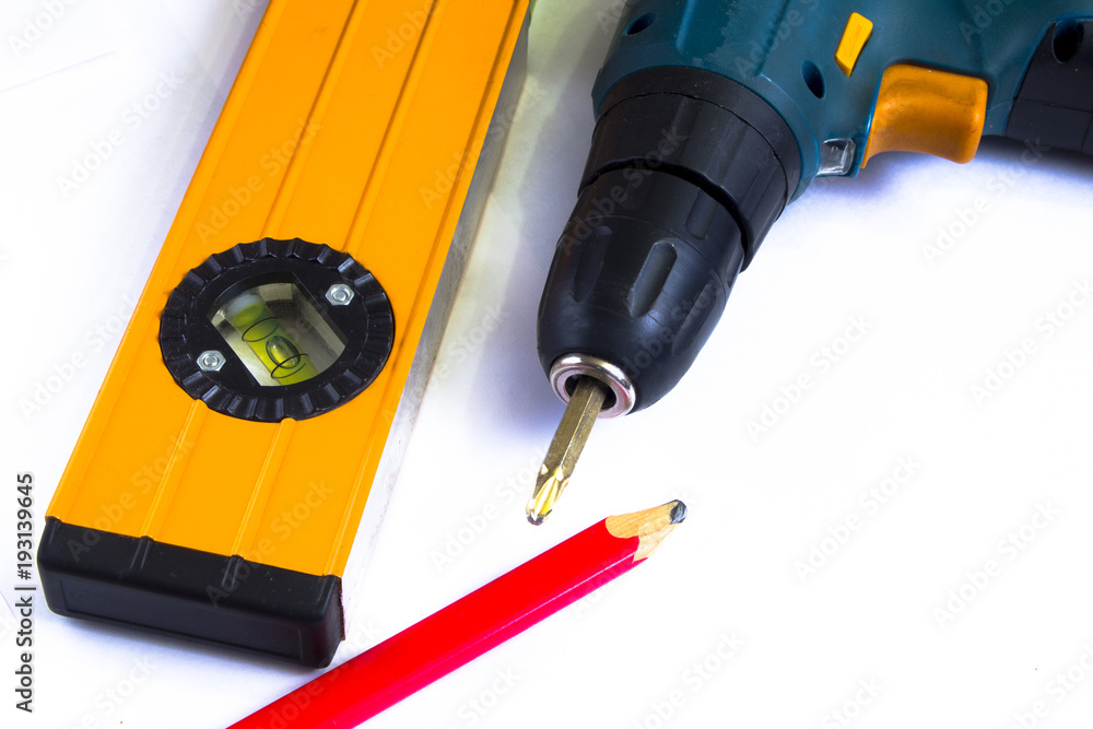 Construction tools on a white background
