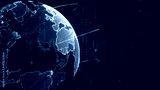 Abstract dark background with arrow dot lighting for cyber technology futuristic concept blur and grain processed