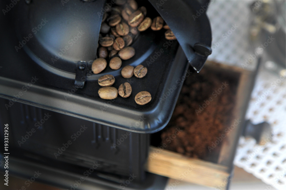 Coffee beans and coffee grinder