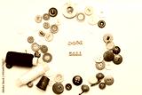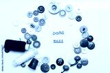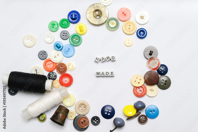 Buttons of different colors, laid out on a white background in the form of a circle
