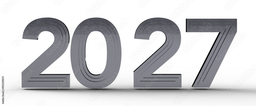 3D render of the year 2027 in a modern metallic style, perfect for futuristic and new year themes. Ideal for design need