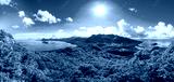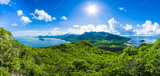 Aerial view of Mauritius islands with Le Morne Brabant mountain, Africa