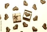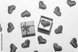 Red heart in a gift box on a white background with lots of red little hearts concept love