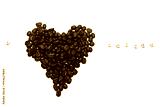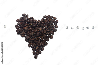 Elegant heart made of grains of roasted fragrant coffee, I love coffee concept