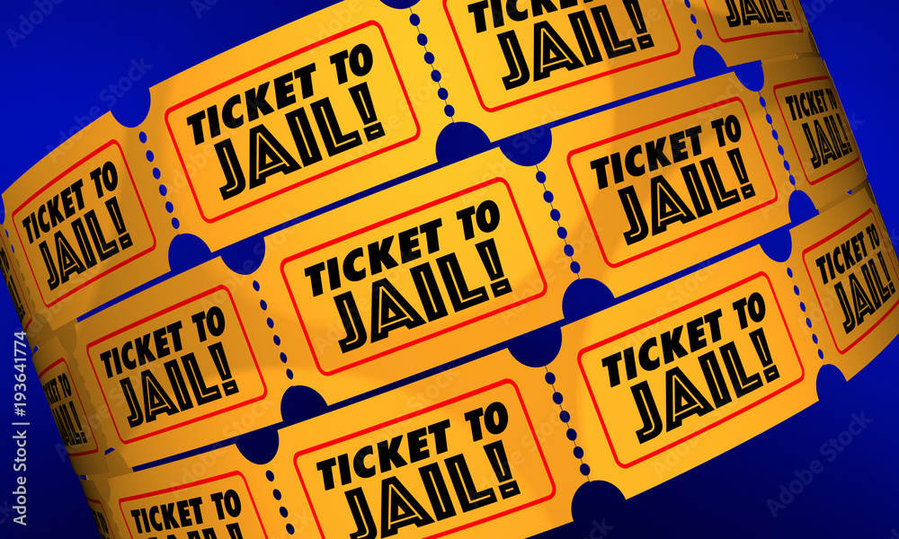 Ticket to Jail Criminal Activity Crime Suspect Caught 3d Illustration