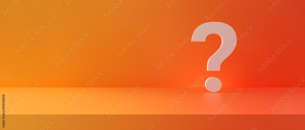 Question mark standing on orange studio platform
