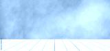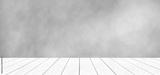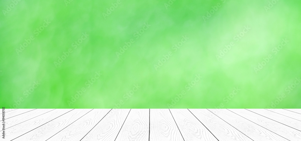 Perspective white wood over blur abstract green trees leaves nature with bokeh background, product display montage, spring and summer season