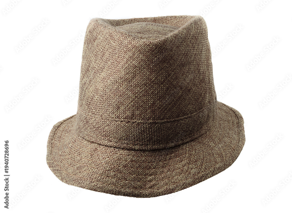 Classic woven brown fedora hat isolated on a white background