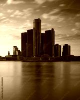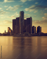 Beautiful skyline of Detroit City, the view from Windsor, Ontario, Canada.