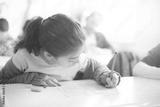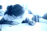 little girl student looking multiple choice exam form