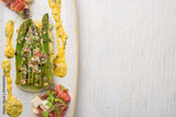 Plate with vegan food over rustic wooden table