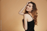 Portrait of a happy young woman with long brown hair
