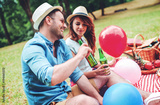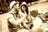 Couple enjoying picnic together. Love and tenderness, dating, romance, lifestyle concept
