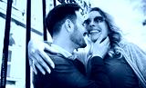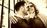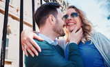 Happy loving couple at the meeting on the street. Love, dating, romance, fashion