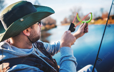 Fisherman enjoys in fishing on the river. Sport, recreation, lifestyle