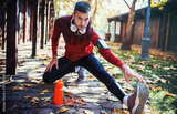 Runner stretching his body after training. Fitness, sport, lifestyle concept