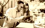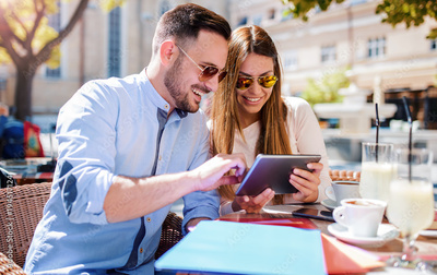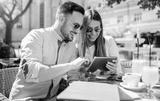 Young couple drinking coffee in a cafe. Dating, relationships, love, romance, lifestyle