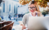 Business woman on coffee break in a cafe. Business, education, lifestyle concept