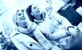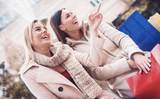 Shopping time. Young women shopping together. Consumerism, shopping, lifestyle