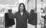 Shopping time. Young woman in shopping mall looking for presents. Consumerism, shopping, lifestyle concept