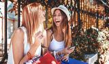 Shopping time. Young women shopping together. Consumerism, shopping, lifestyle