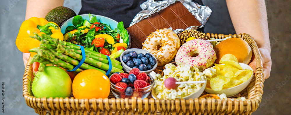 Süssigkeiten Gegen Obst und Gemüsse (Diät Konzept)