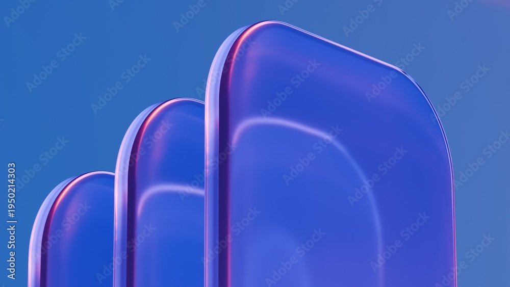 Abstract wavy curved 3d render. Neon glass squares with rounded corners. Neon light.
