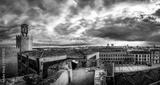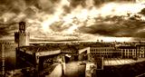 sunset from the citadel of Badajoz with a view to tower espantaperros and plaza alta