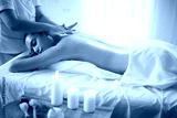 Beautiful woman getting a salt scrub beauty treatment in the health spa.