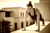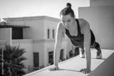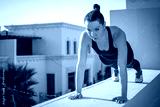 Sporty girl doing push-ups on wall outdoors.