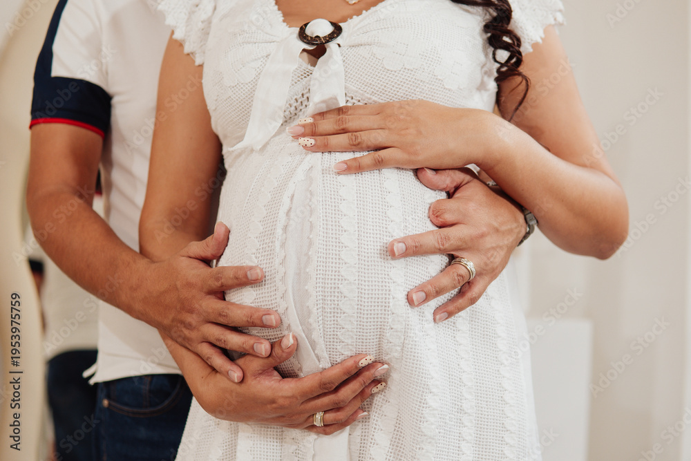 Man caressing pregnant woman's belly