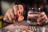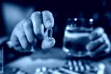 Taking pills at home for flu, cold, depression, pain relief and general health.