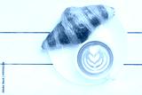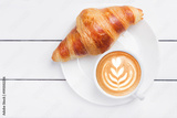 coffee croissant view from above wooden background white