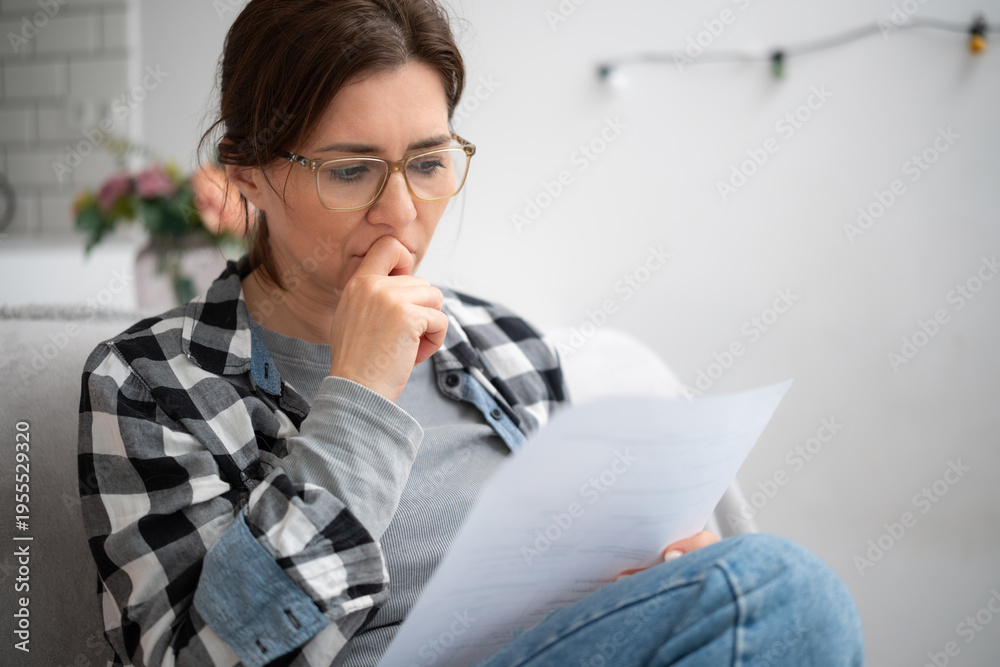 Girl In Glasses Reading Unpleasant Notice With Financial Information