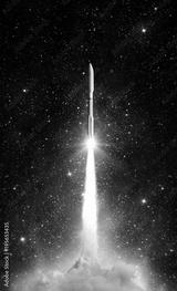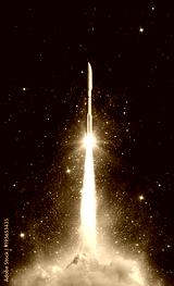 Rocket space ship launching from planet Earth and flying into outer space. Space exploration background. Elements of this image furnished by NASA.