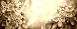 Cherry blossom, sakura flowers. Abstract blurred wide background of spring blossoms tree, selective focus.