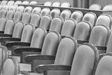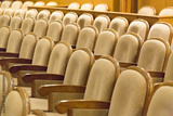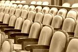 Brown vintage seats armchairs in theater. Theater or conference room interior.