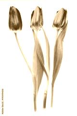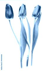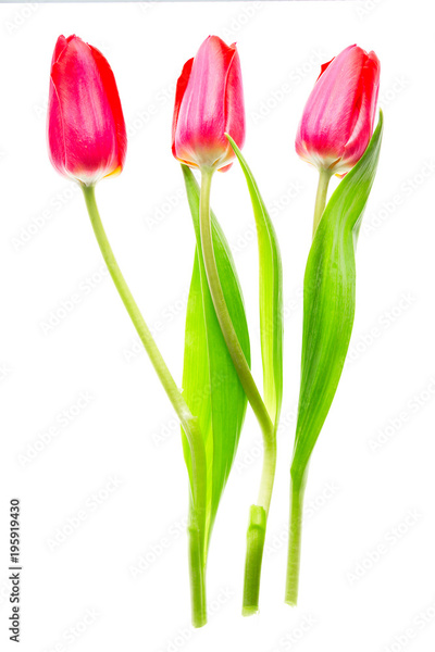 Three red colorful tulips flowers isolated on white background. Mothersday or spring concept.