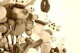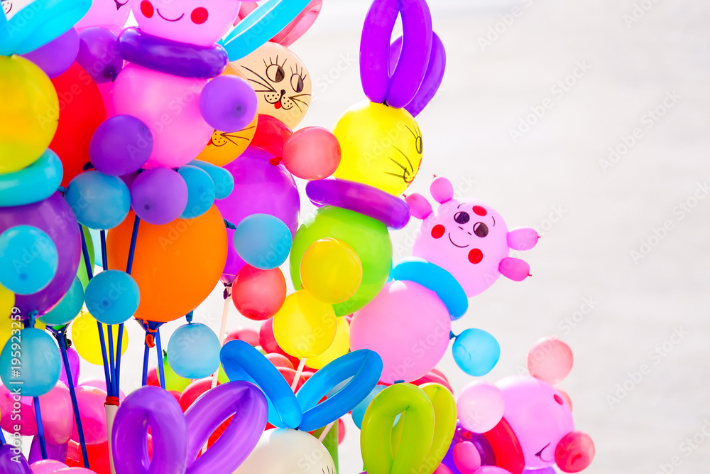 Beautiful colored balloons on white background. Multicolored surprise childhood background.
