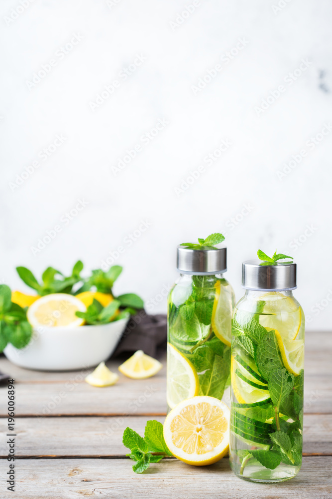 Fresh cool lemon cucumber mint infused water detox drink