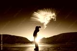 boiling water frost in polar arctic sky in Norway Svalbard in Longyearbyen man mountains