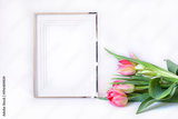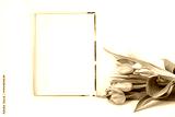 Frame card with spring flowers close up. Copy space
