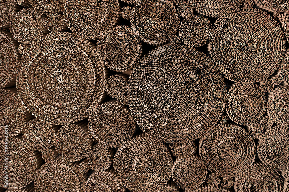 twisted coils of corrugated cardboard background abstraction