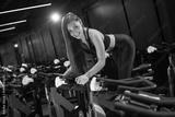 Young sportswoman riding exercise bike in gym