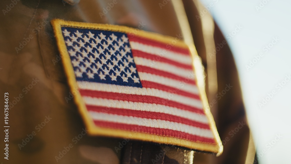 American Flag Patch on a Soldier Chest During Veterans Day Celebration