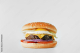 Chicken burger with egg and cheese on a white background isolated