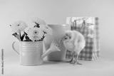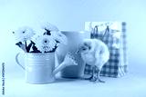 Wielkanocny kurczak indyka na turkusowym i szarym tle