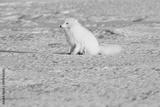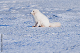 closeup wildlife white polar fox winter in the Arctic Svalbard on a sunny day