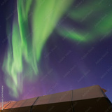 The polar arctic Northern lights aurora borealis sky star in Norway Svalbard in Longyearbyen city mountains