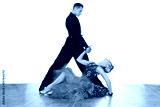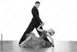 Latino dancers in ballroom against white background